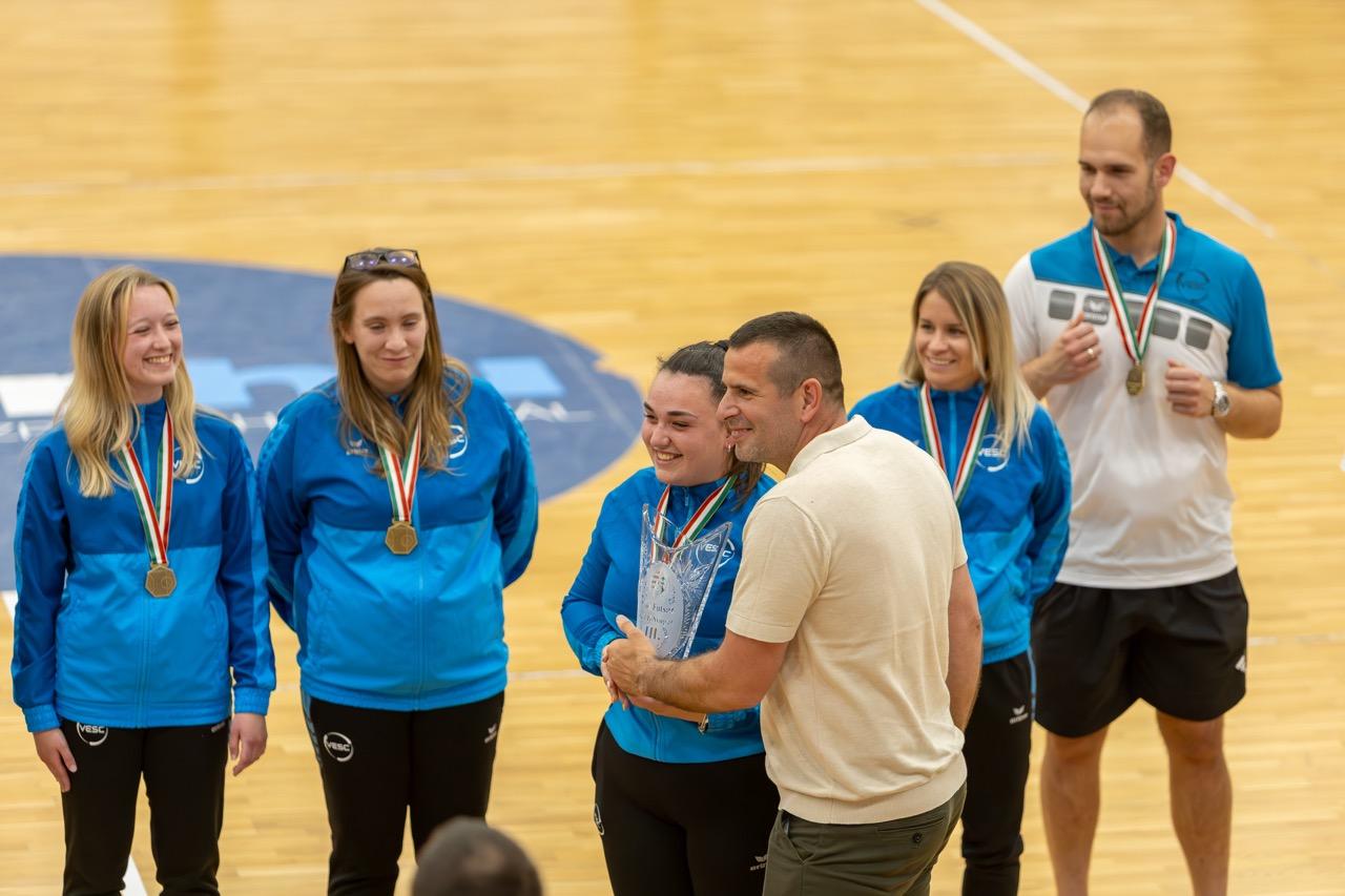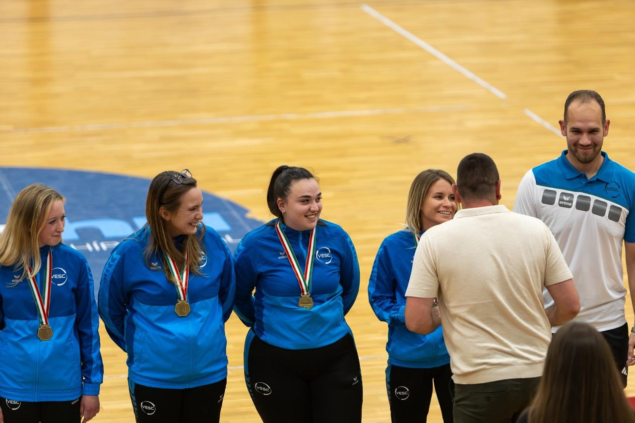 NB II-es női futsalosaink a férfi bajnoki döntő első meccsének félidejében vehették át az NB II Nyugati csoportjának bronzérmeit.