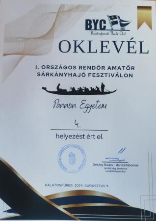 Az I. Országos Rendőr Amatőr Sárkányhajó Fesztiválon a Pannon Egyetem csapata augusztus 9-én a 17 fős mezőnyből nagyon kicsi különbséggel 4. helyet ért el.