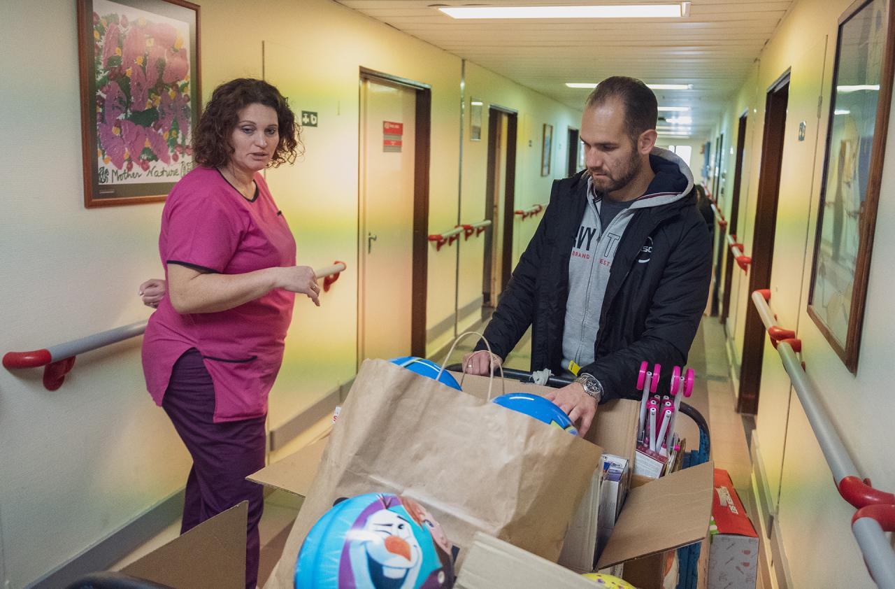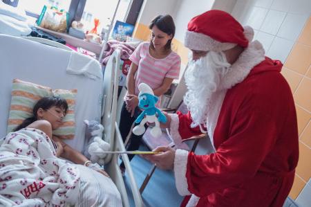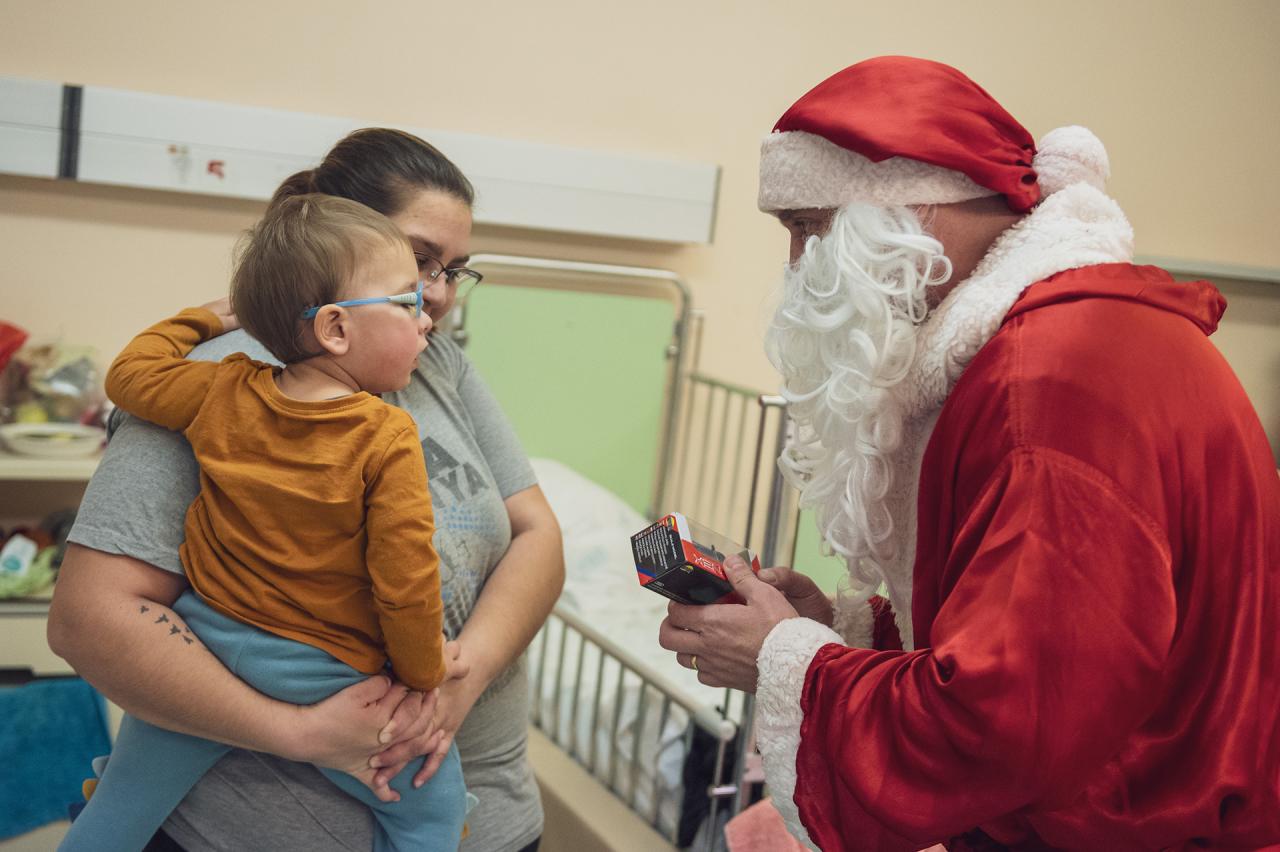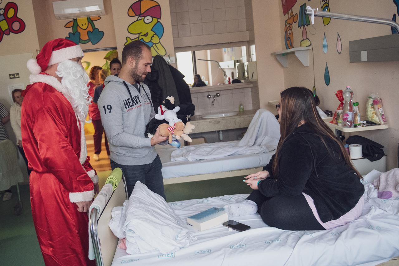 Az öreg nagyszakállú szakosztályaink felajánlásait vitte el ma délután a Veszprém Vármegyei Csolnoky Ferenc Kórház gyermekosztályára, hogy szebbé tegye a kisbetegek mindennapjait.